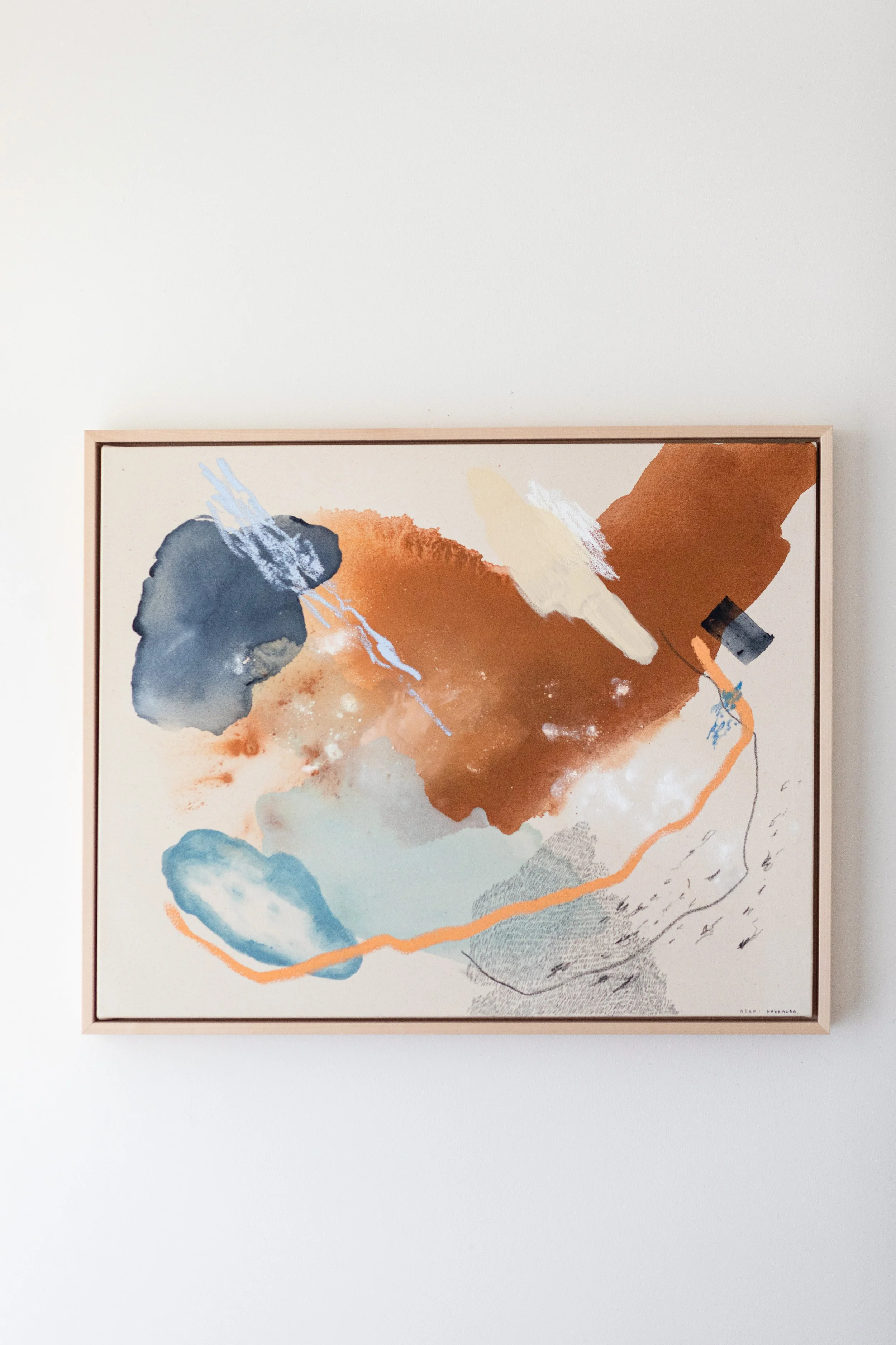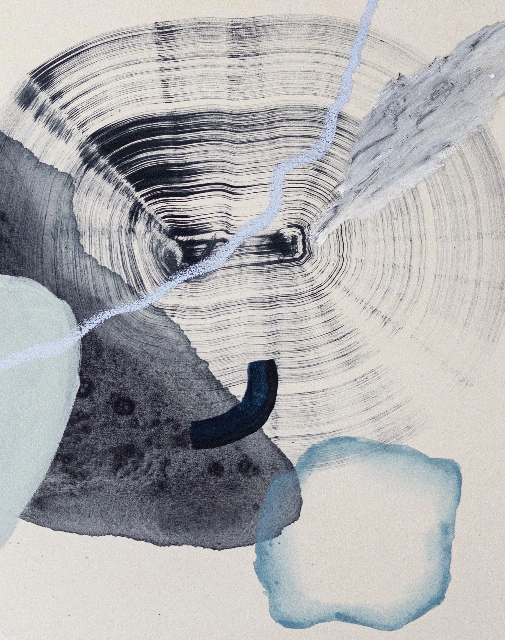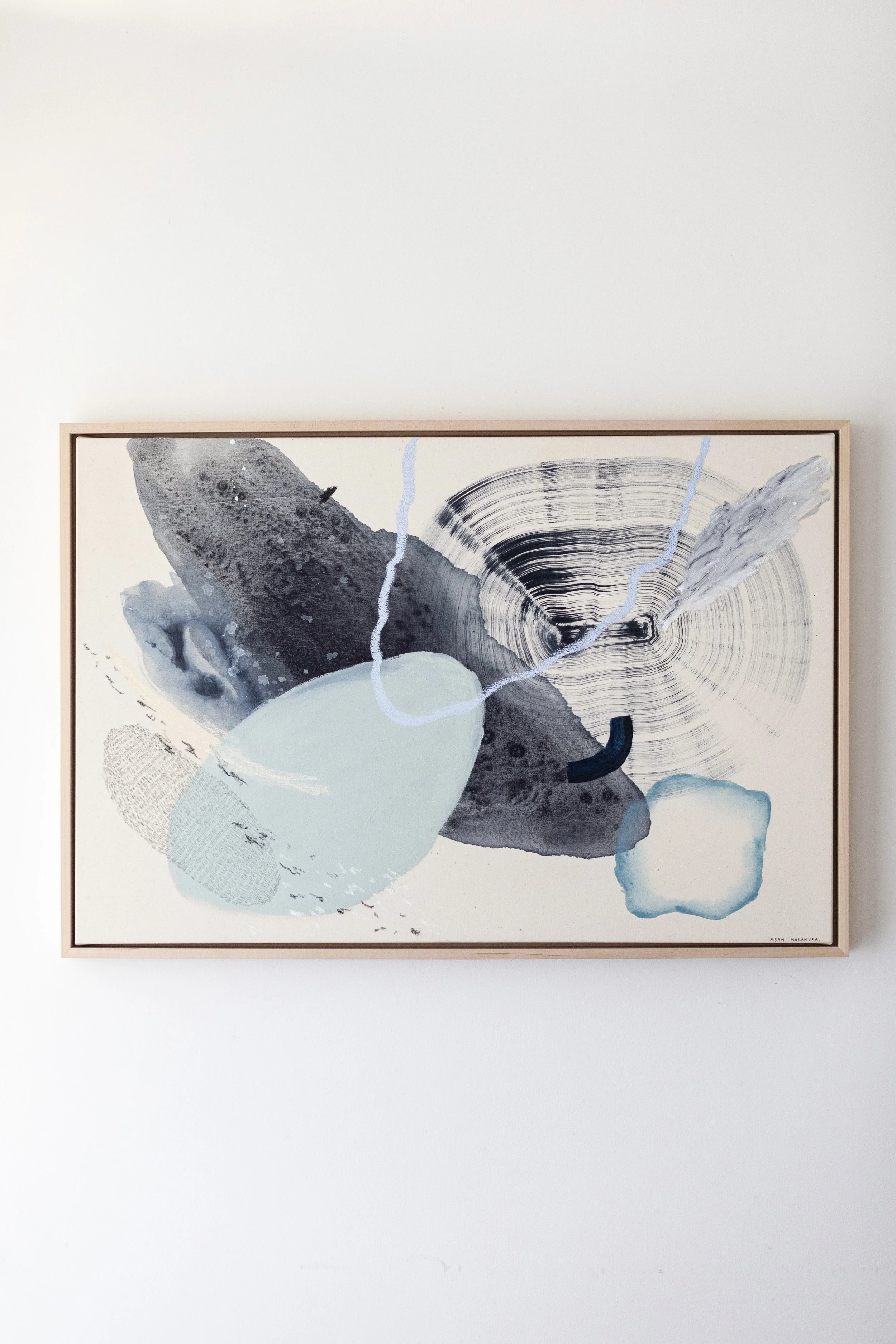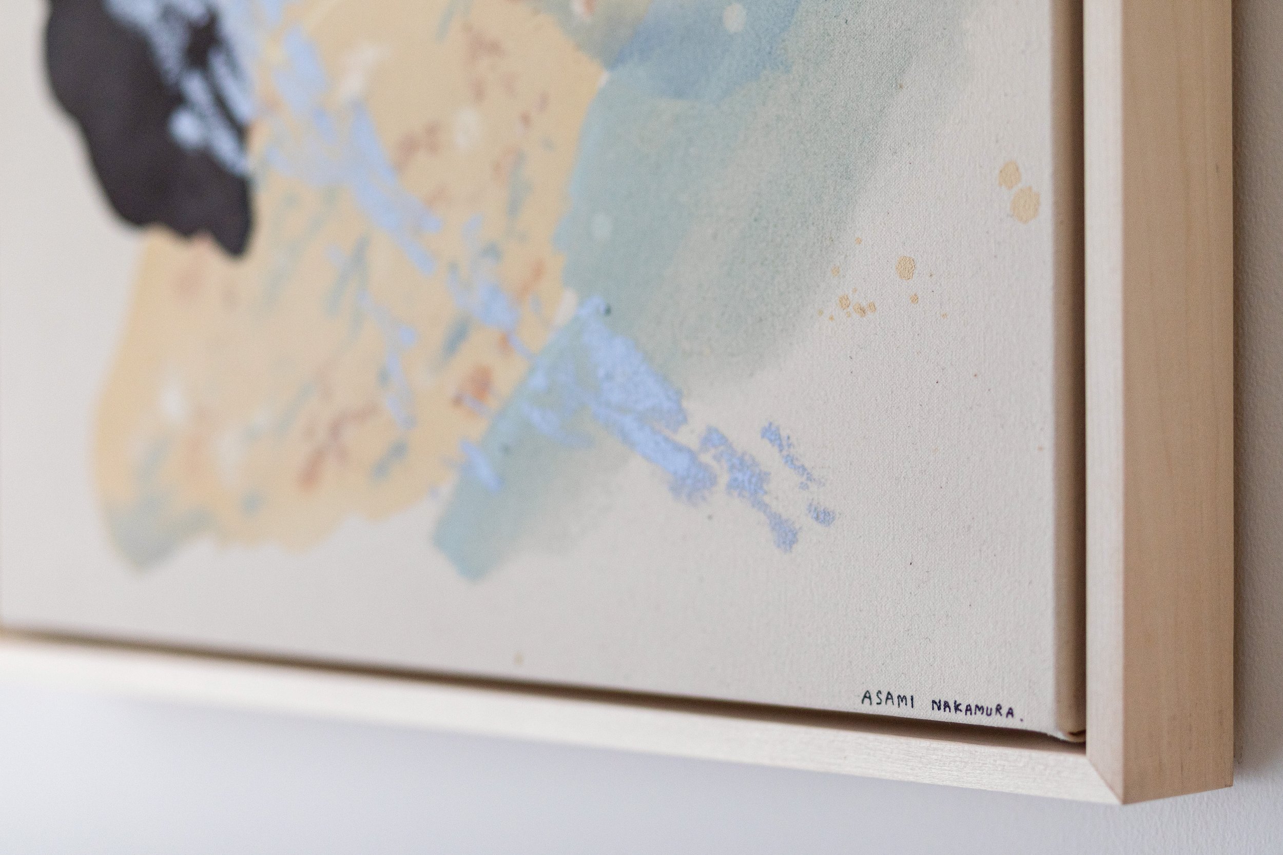 Asami wanted to translate to her canvas the tranquil silence and fragility she felt from the colour blue. Similar to the blossoming flowers in the poem, Iroha, Asami drew parallels with her interpretation of glaciers that will eventually melt and scatter into many shades of blue, representing the invariable array of emotions that life brings.